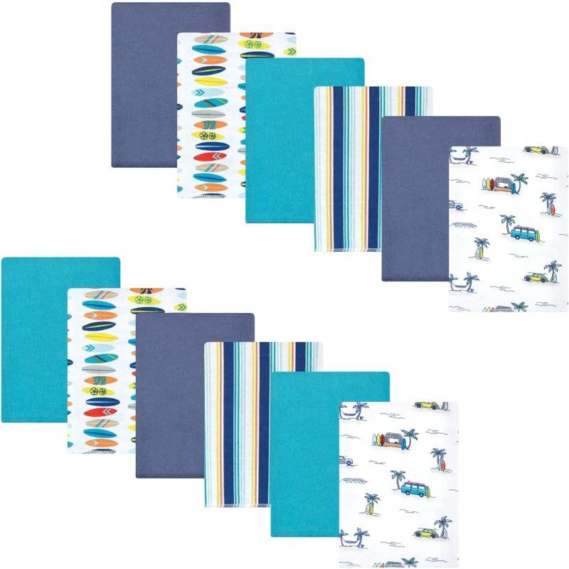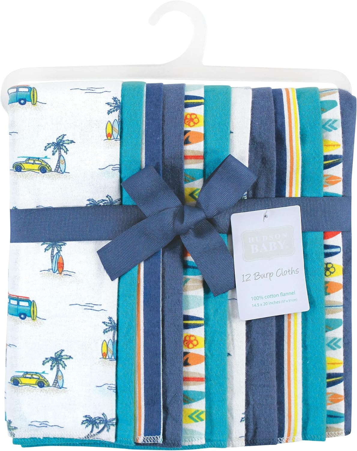 Hudson Baby Unisex Baby Cotton Flannel Burp Cloths Bundle, Girl Woodland Pals, One Size(One Size Surfer Dude)