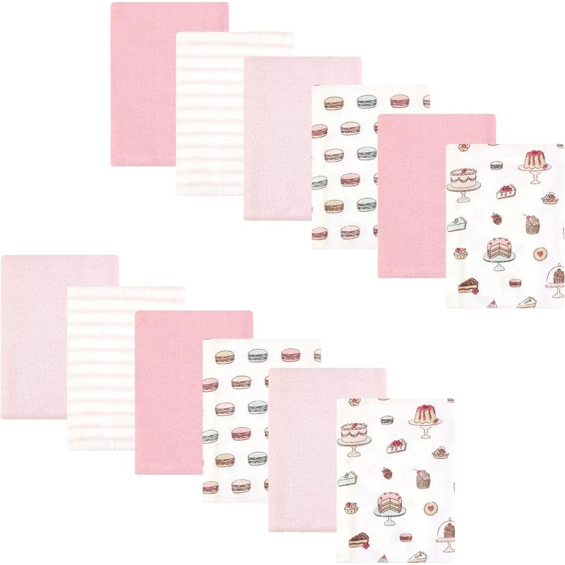 Hudson Baby Unisex Baby Cotton Flannel Burp Cloths Bundle, Girl Woodland Pals, One Size(One Size Sweet Bakery)