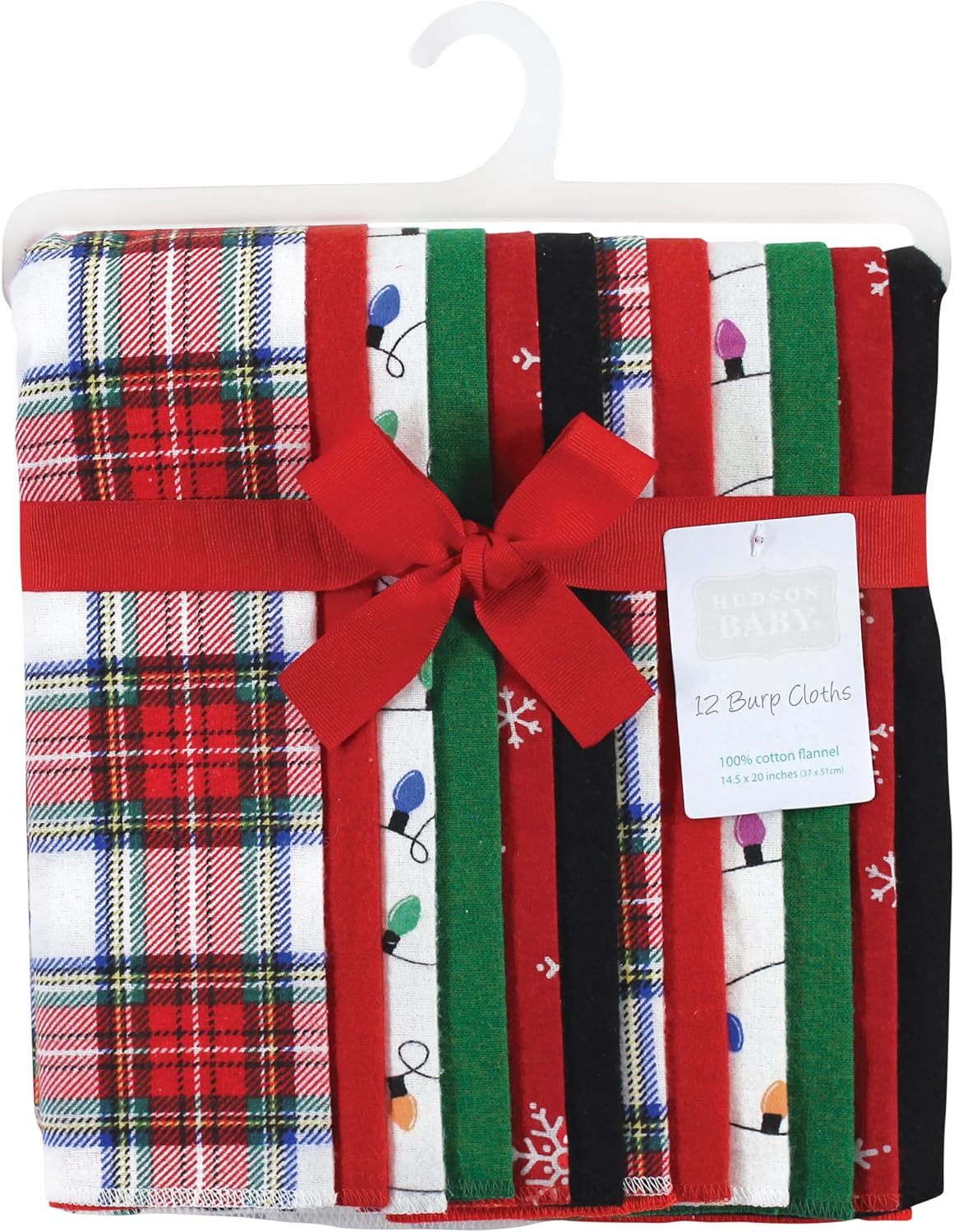 Hudson Baby Unisex Baby Cotton Flannel Burp Cloths Bundle, Girl Woodland Pals, One Size(One Size White Tartan)