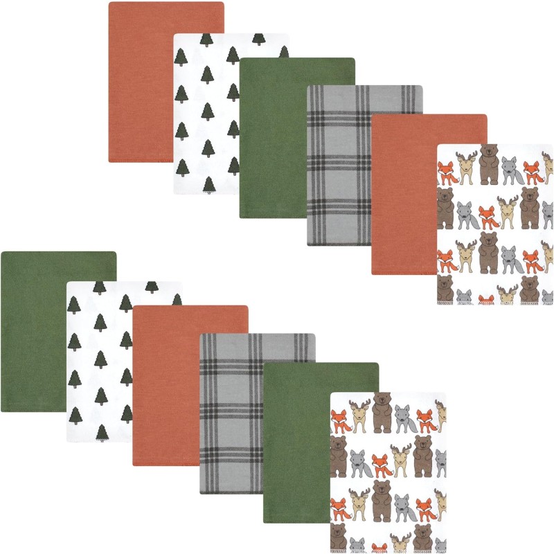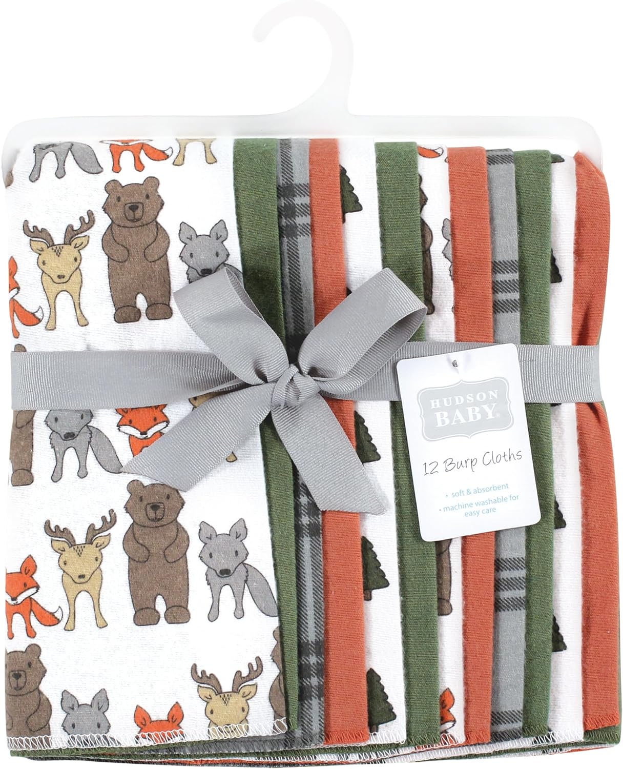 Hudson Baby Unisex Baby Cotton Flannel Burp Cloths Bundle, Girl Woodland Pals, One Size(One Size Wild Forest)