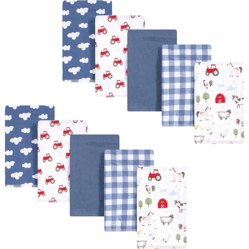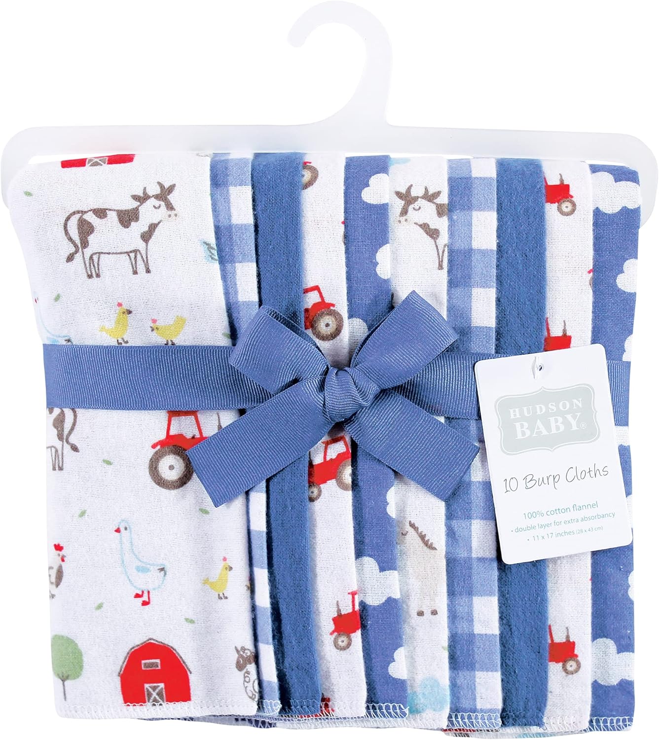 Hudson Baby Unisex Baby Cotton Flannel Burp Cloths, Lemons, One Size(Boy Farm)