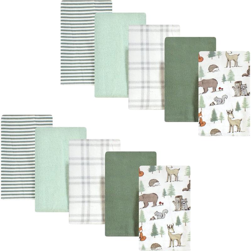 Hudson Baby flannel burp cloths feature multiple layers of fabric to help clean up the messes and spills that you are bound to encounter with your new baby. Our burp cloths are soft and gentle when used on baby's skin and help protect parent's clothes from drool and spills while feeding, burping, and snuggling baby. Our burp cloths will come in handy everyday, whether you are hanging out at home, traveling, or leaving your little one at daycare.