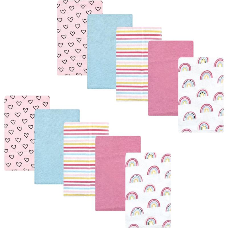 Hudson Baby flannel burp cloths feature multiple layers of fabric to help clean up the messes and spills that you are bound to encounter with your new baby. Our burp cloths are soft and gentle when used on baby's skin and help protect parent's clothes from drool and spills while feeding, burping, and snuggling baby. Our burp cloths will come in handy everyday, whether you are hanging out at home, traveling, or leaving your little one at daycare.