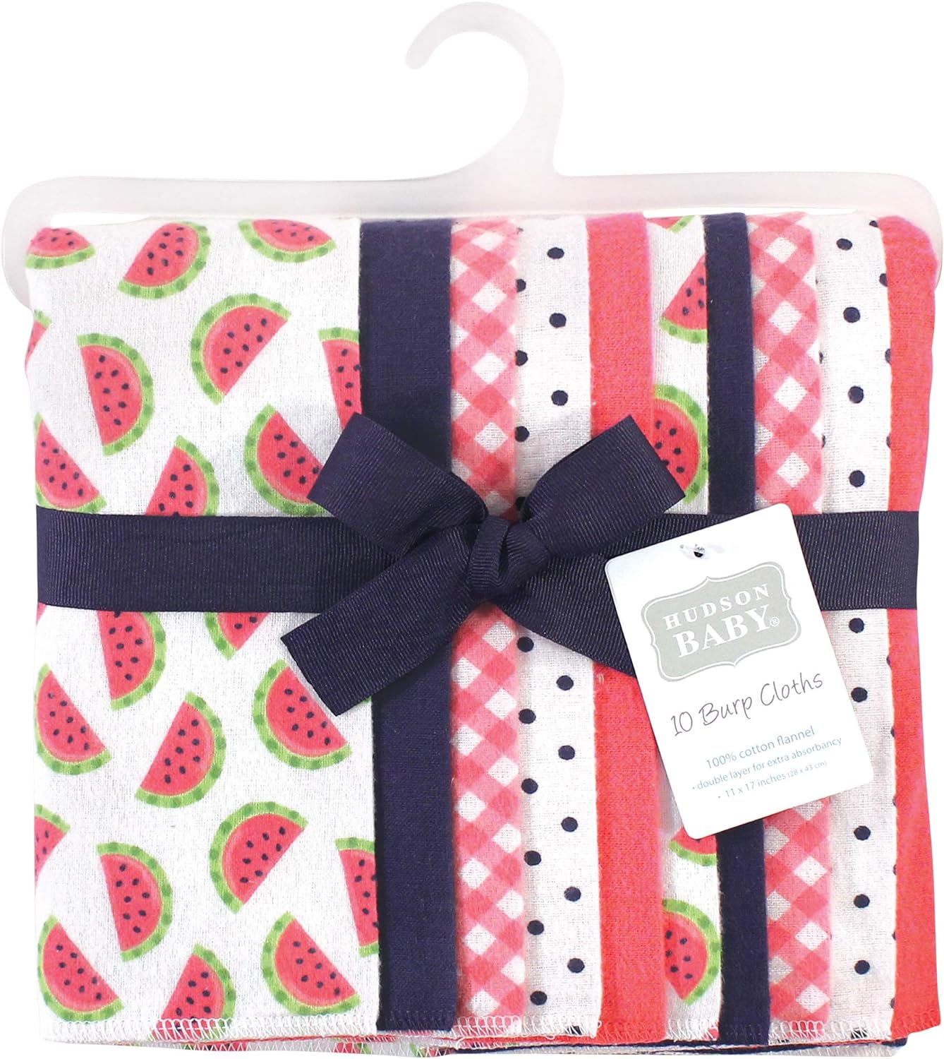 Hudson Baby flannel burp cloths feature multiple layers of fabric to help clean up the messes and spills that you are bound to encounter with your new baby. Our burp cloths are soft and gentle when used on baby's skin and help protect parent's clothes from drool and spills while feeding, burping, and snuggling baby. Our burp cloths will come in handy everyday, whether you are hanging out at home, traveling, or leaving your little one at daycare.