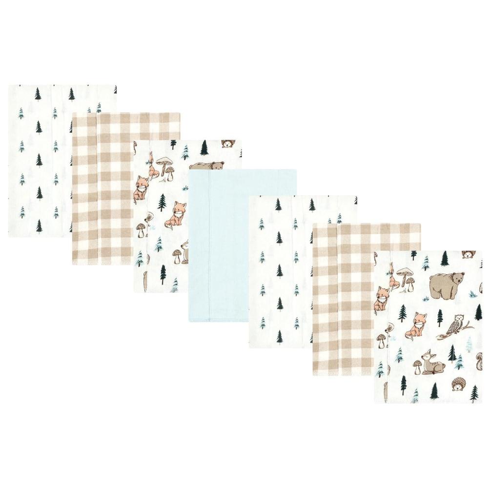 Hudson Baby Unisex Baby Cotton Flannel Burp Cloths, Pink Rose, One Size(Boy Woodland Pals 7-pack)