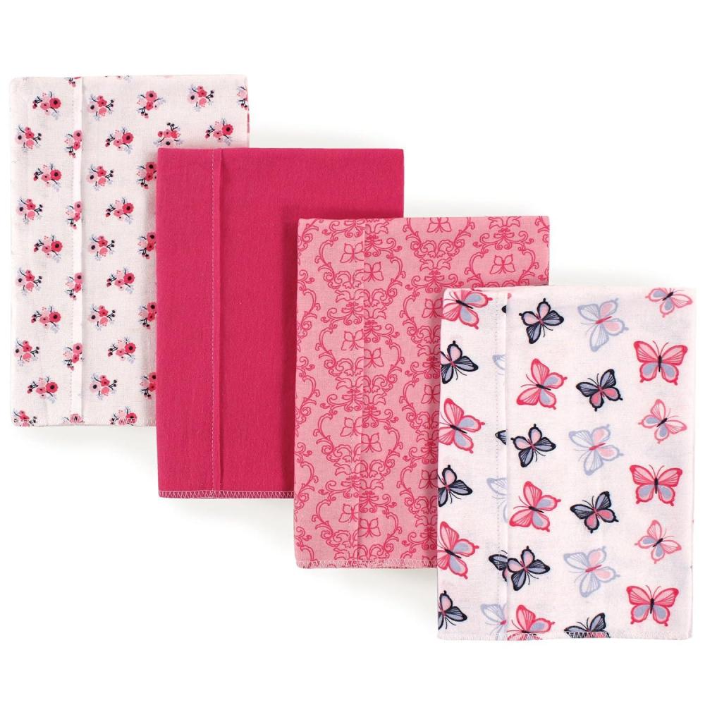 Hudson Baby Unisex Baby Cotton Flannel Burp Cloths, Pink Rose, One Size(Butterflies)