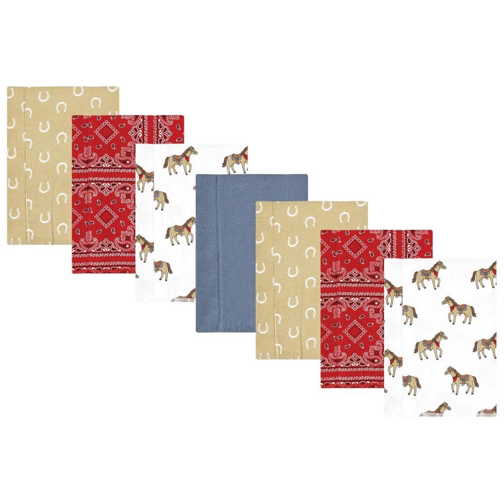 Hudson Baby Unisex Baby Cotton Flannel Burp Cloths, Pink Rose, One Size(Cowboy 7-pack)