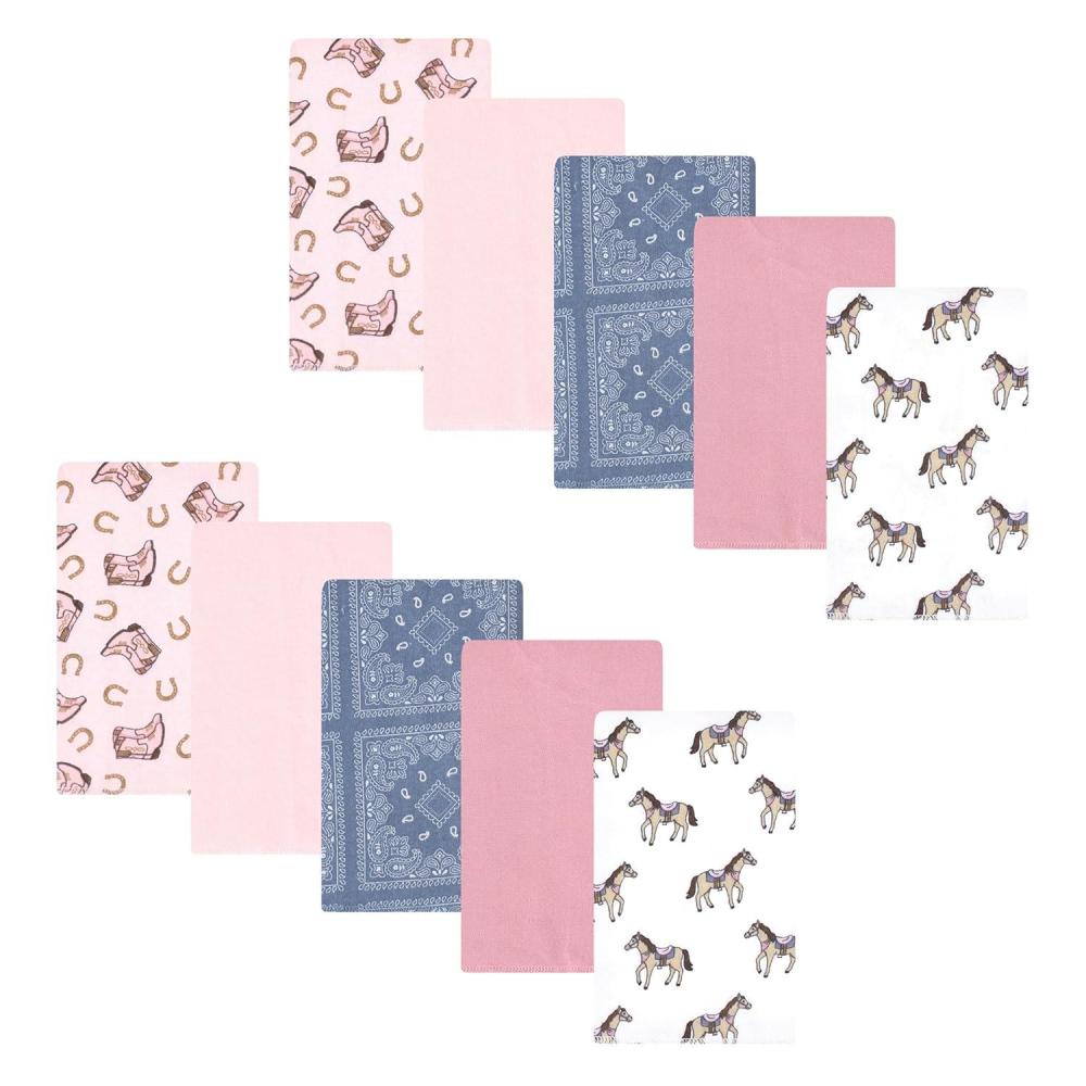 Hudson Baby Unisex Baby Cotton Flannel Burp Cloths, Pink Rose, One Size(Cowgirl 10 Pack)