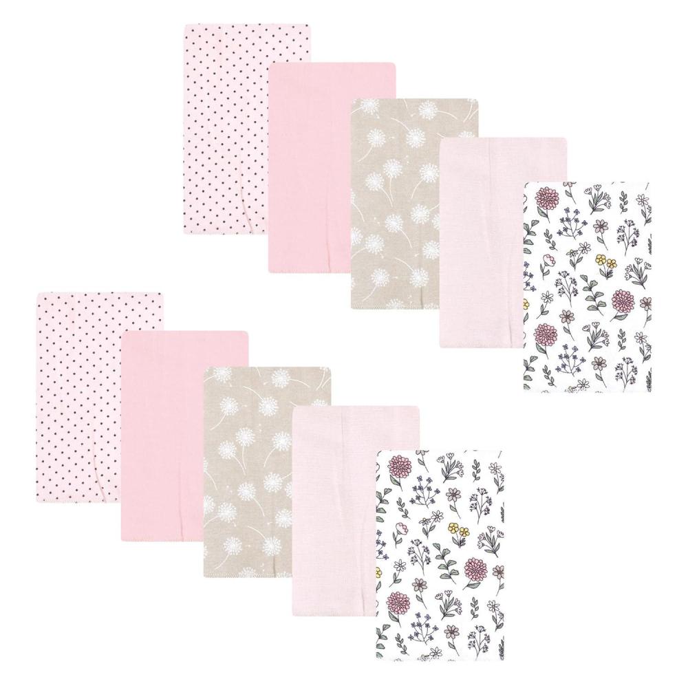 Hudson Baby Unisex Baby Cotton Flannel Burp Cloths, Pink Rose, One Size(Dandelion Wish 10 Pack)