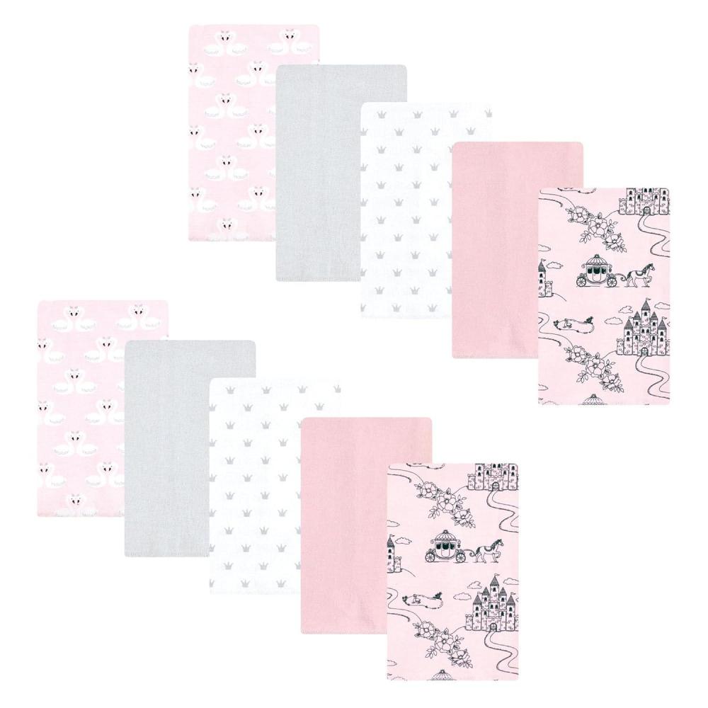 Hudson Baby Unisex Baby Cotton Flannel Burp Cloths, Pink Rose, One Size(Fairytale Princess 10 Pack)