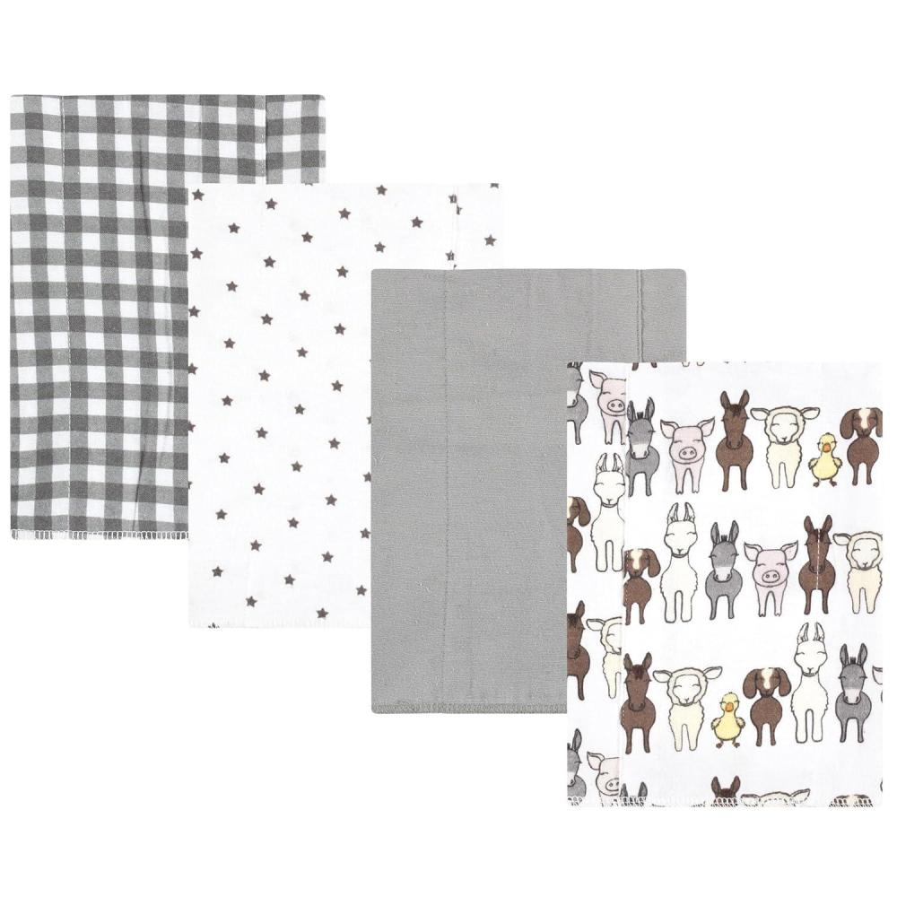 Hudson Baby Unisex Baby Cotton Flannel Burp Cloths, Pink Rose, One Size(Farm Friends Grey 4-pack)