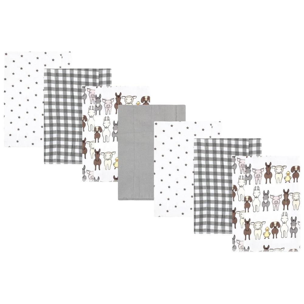 Hudson Baby Unisex Baby Cotton Flannel Burp Cloths, Pink Rose, One Size(Farm Friends Grey 7-pack)