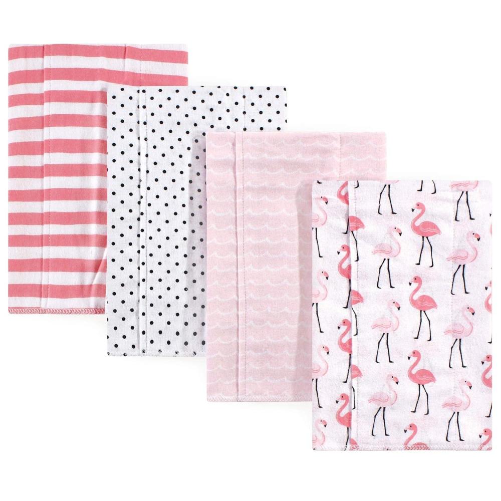 Hudson Baby Unisex Baby Cotton Flannel Burp Cloths, Pink Rose, One Size(Flamingos)