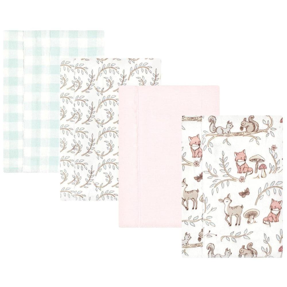 Hudson Baby Unisex Baby Cotton Flannel Burp Cloths, Pink Rose, One Size(Girl Woodland Pals 4-pack)