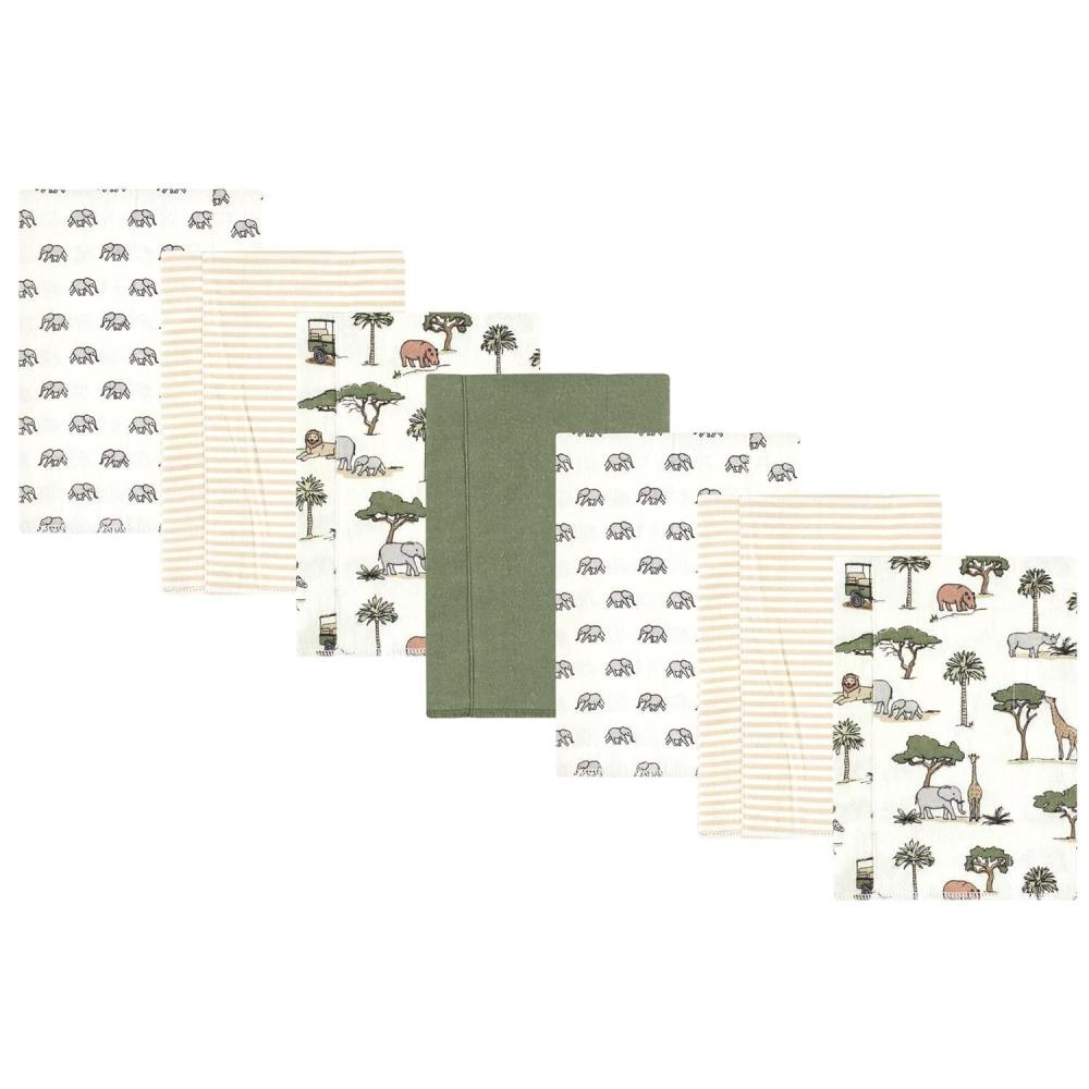 Hudson Baby Unisex Baby Cotton Flannel Burp Cloths, Pink Rose, One Size(Going on Safari 7-pack)