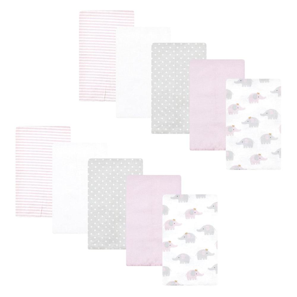 Hudson Baby Unisex Baby Cotton Flannel Burp Cloths, Pink Rose, One Size(Lilac Elephants 10 Pack)