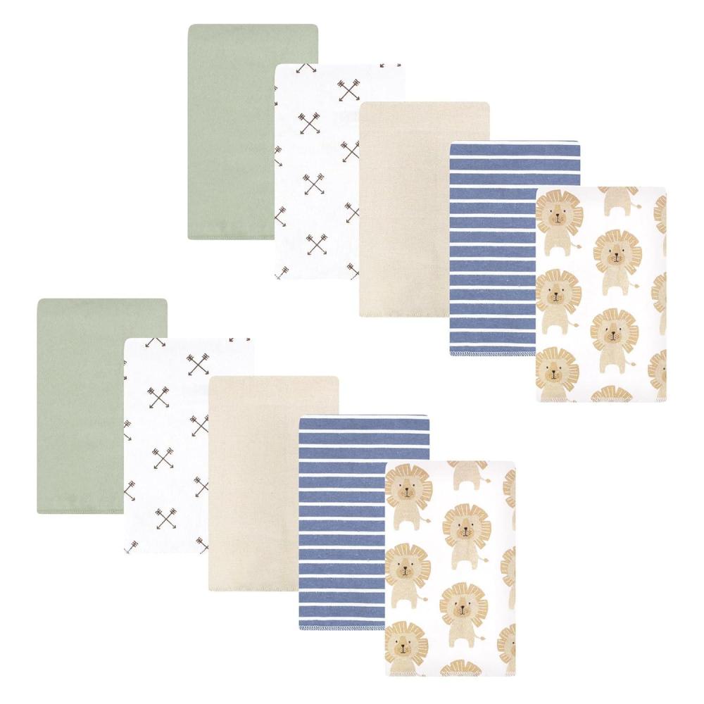 Hudson Baby Unisex Baby Cotton Flannel Burp Cloths, Pink Rose, One Size(Modern Lion 10-pack)