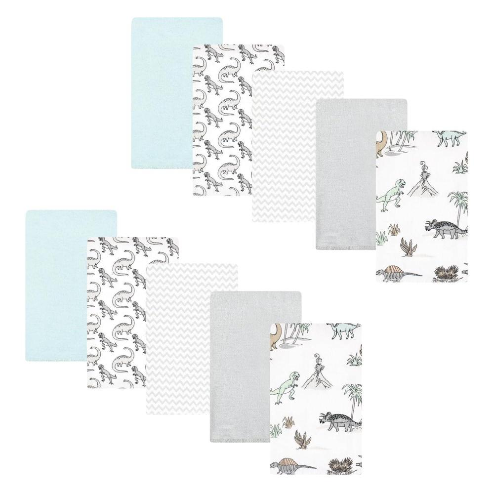 Hudson Baby Unisex Baby Cotton Flannel Burp Cloths, Pink Rose, One Size(Neutral Dino World 10-pack)