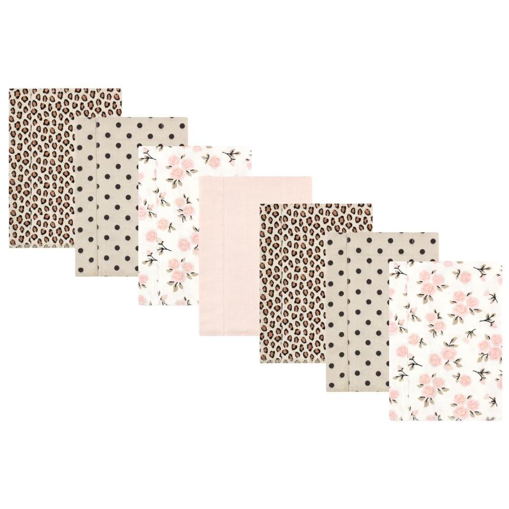 Hudson Baby Unisex Baby Cotton Flannel Burp Cloths, Pink Rose, One Size(Neutral Pink Floral 7 Pack)