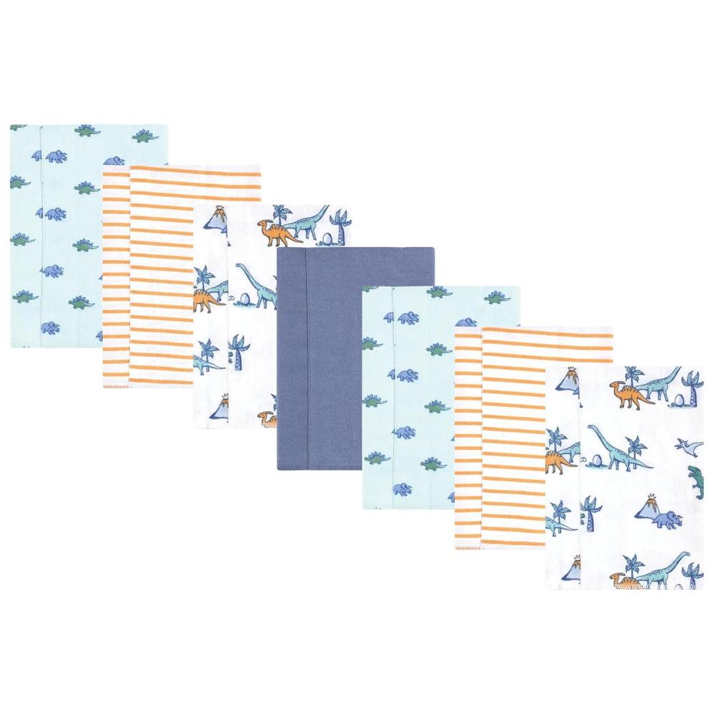Hudson Baby Unisex Baby Cotton Flannel Burp Cloths, Pink Rose, One Size(Pastel Dino 7 Pack)