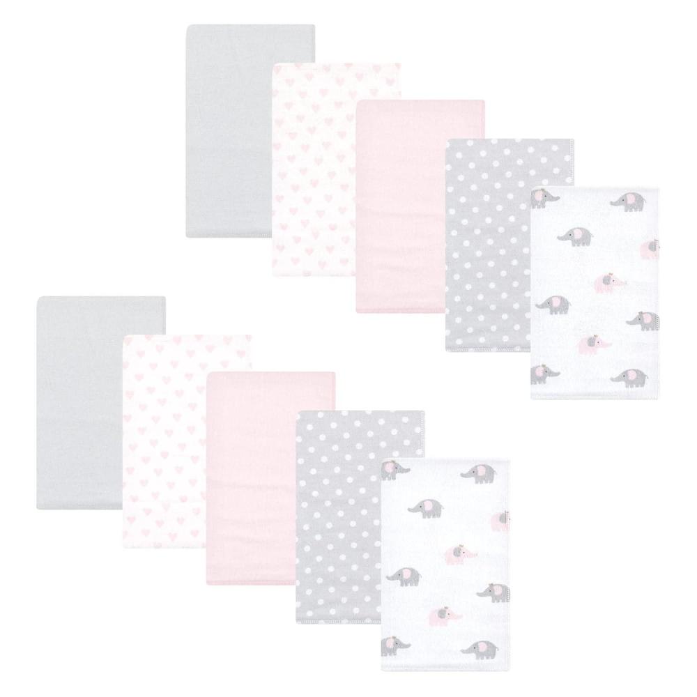 Hudson Baby Unisex Baby Cotton Flannel Burp Cloths, Pink Rose, One Size(Pink Gray Elephant)