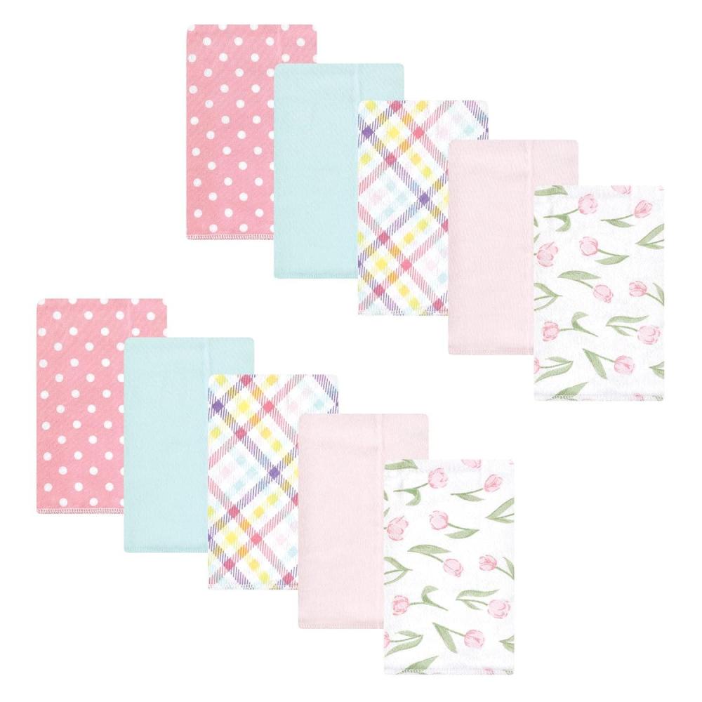 Hudson Baby Unisex Baby Cotton Flannel Burp Cloths, Pink Rose, One Size(Pink Yellow Pretty Floral 10 Pack)