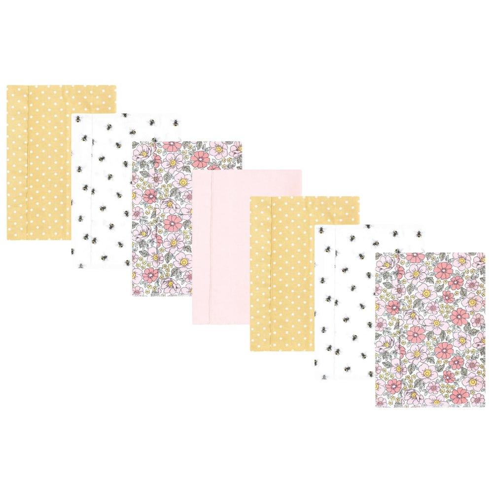 Hudson Baby Unisex Baby Cotton Flannel Burp Cloths, Pink Rose, One Size(Pink Yellow Pretty Floral 7 Pack)