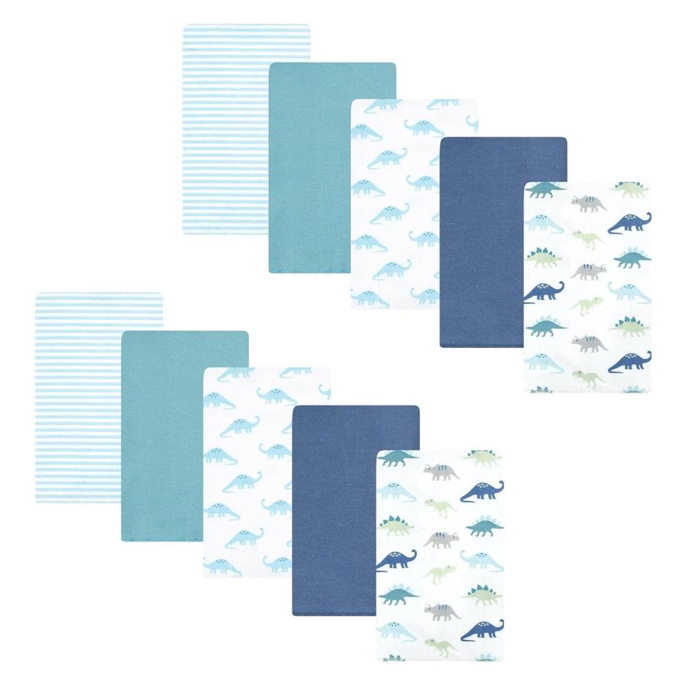 Hudson Baby Unisex Baby Cotton Flannel Burp Cloths, Pink Rose, One Size(Soft Teal Dino 10 Pack)