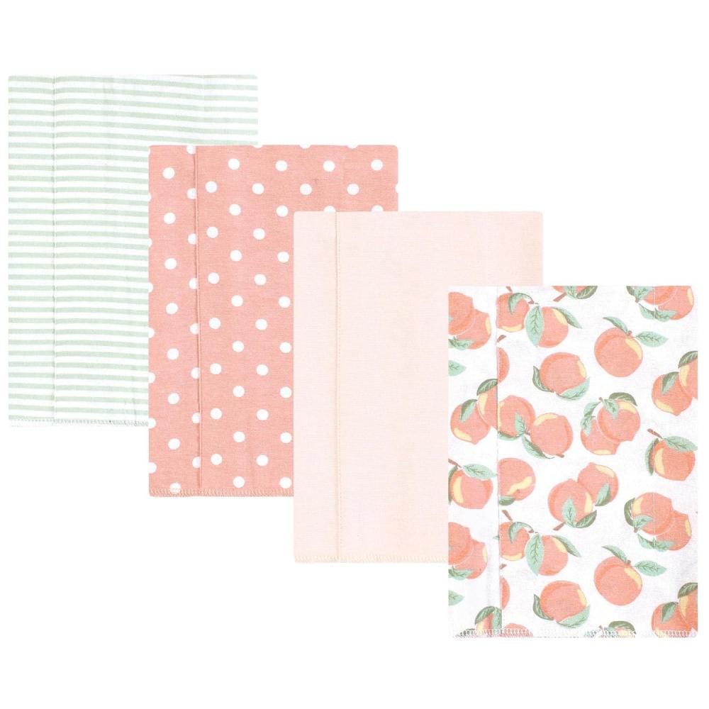 Hudson Baby Unisex Baby Cotton Flannel Burp Cloths, Pink Rose, One Size(Sweet Peach 4 Pack)