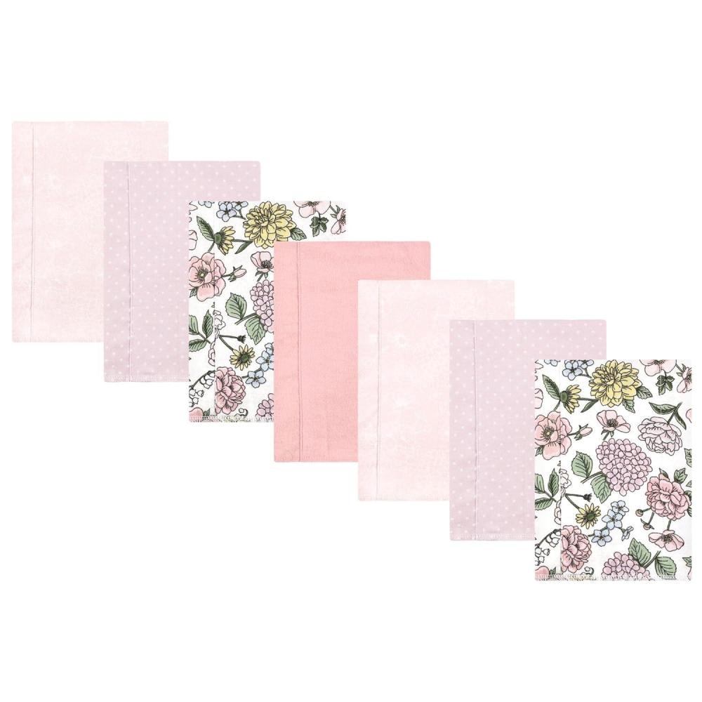 Hudson Baby Unisex Baby Cotton Flannel Burp Cloths, Pink Rose, One Size(Vintage Blossom 7 Pack)