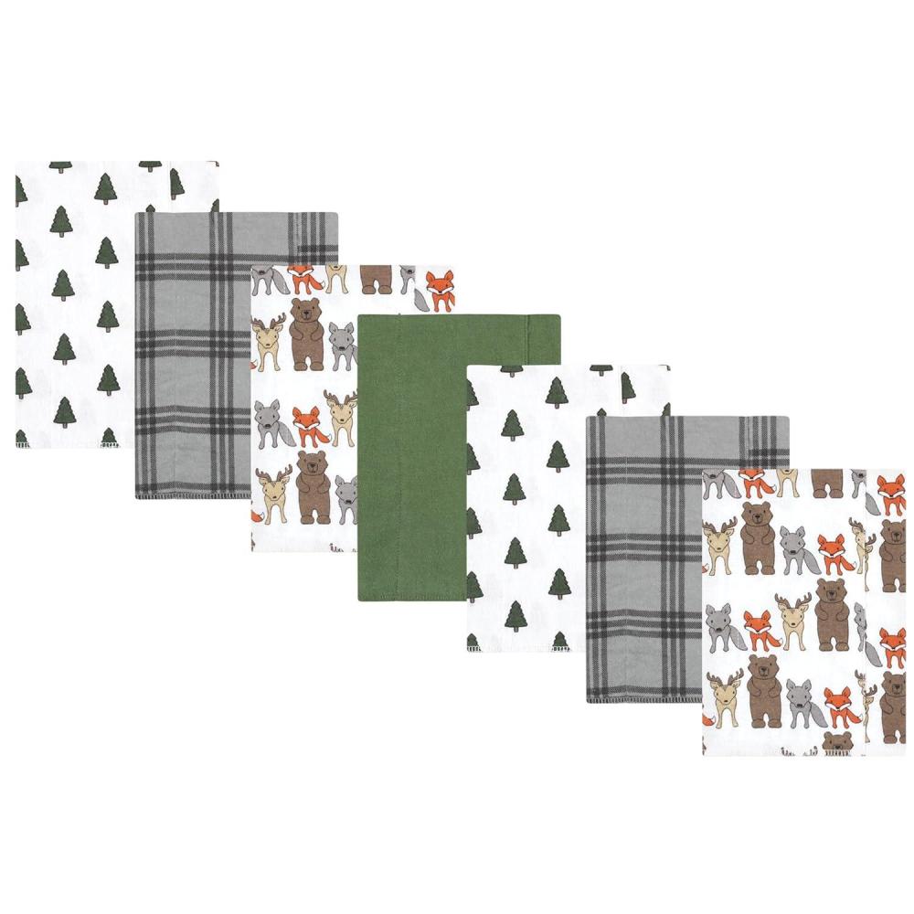 Hudson Baby Unisex Baby Cotton Flannel Burp Cloths, Pink Rose, One Size(Wild Forest 7-pack)