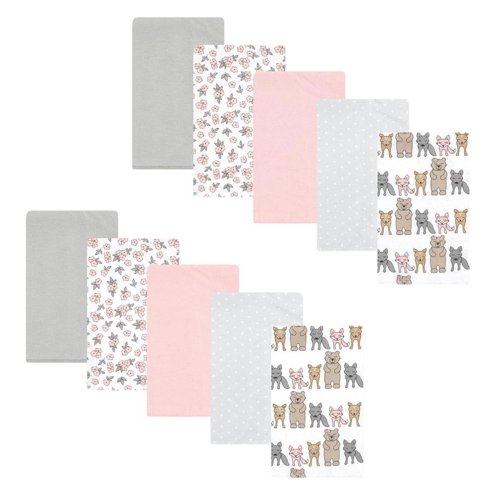 Hudson Baby Unisex Baby Cotton Flannel Burp Cloths, Pink Rose, One Size(Wild Forest Pink 10-pack)