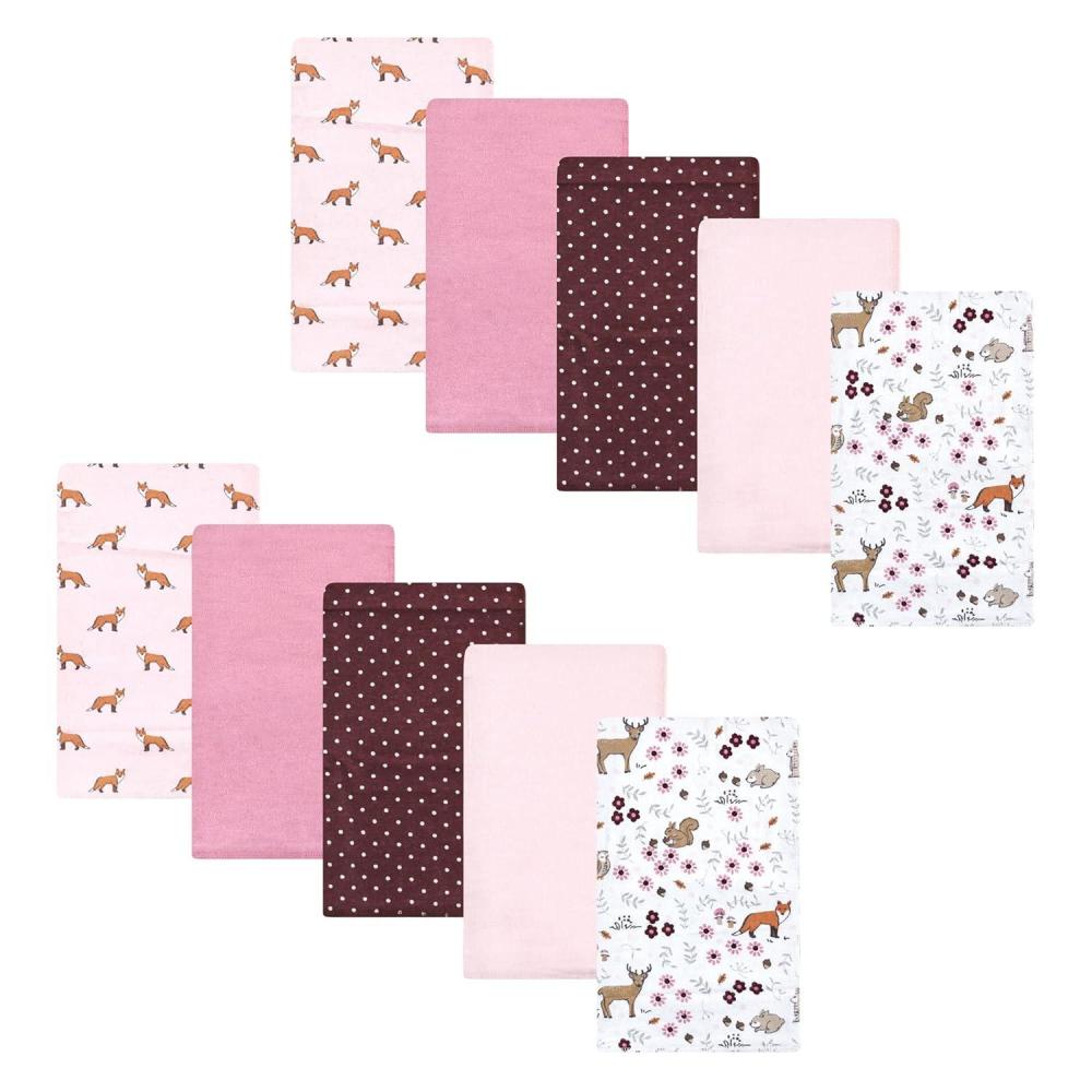 imageHudson Baby Unisex Baby Cotton Flannel Burp Cloths Pink Rose One SizeWoodland Faces