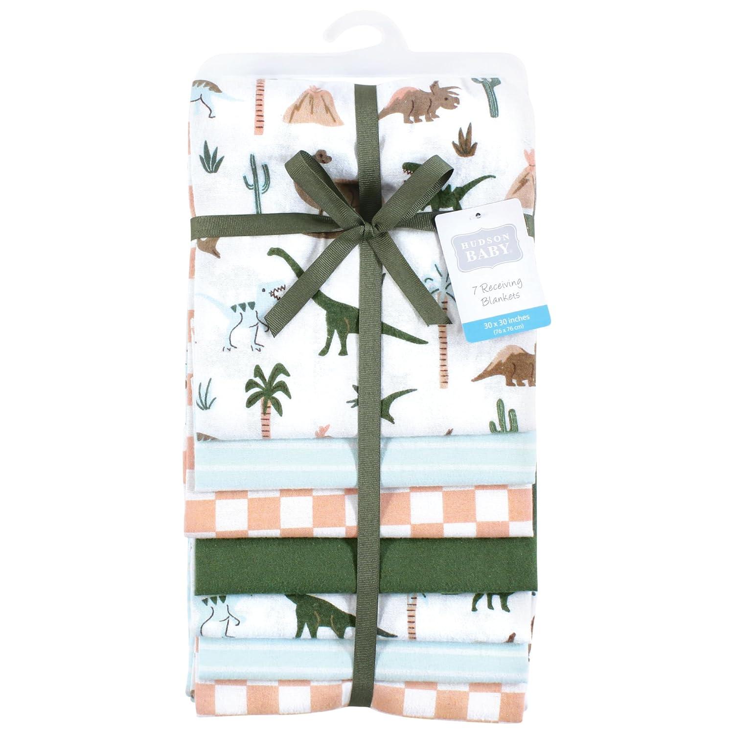 Hudson Baby Unisex Baby Cotton Flannel Receiving Blankets 7-Pack Bundle, Retro Dinosaur, One Size(Retro Dinosaur)
