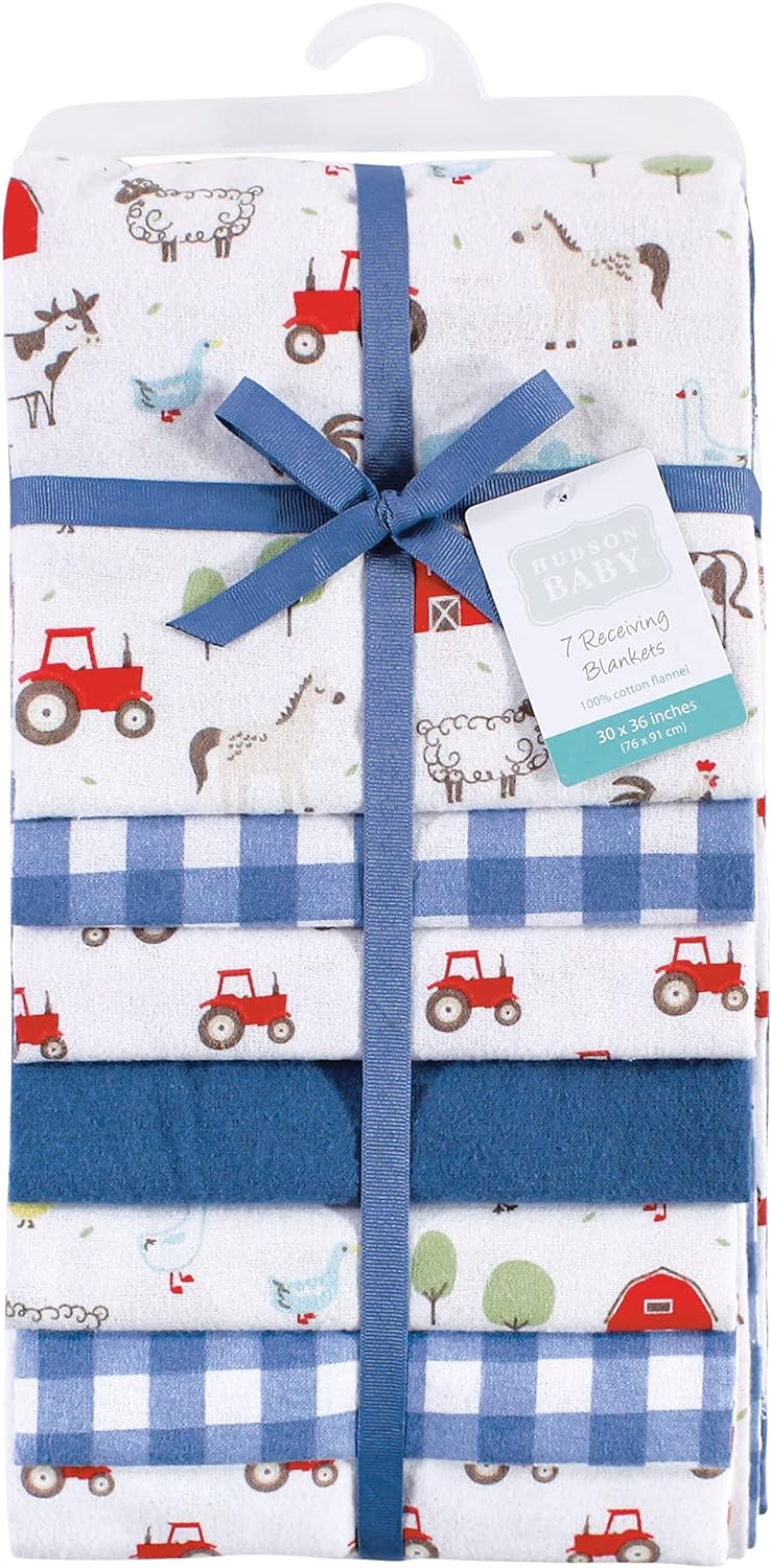 Hudson Baby Unisex Baby Cotton Flannel Receiving Blankets Bundle, Bee, One Size(Boy Farm Animals One Size)