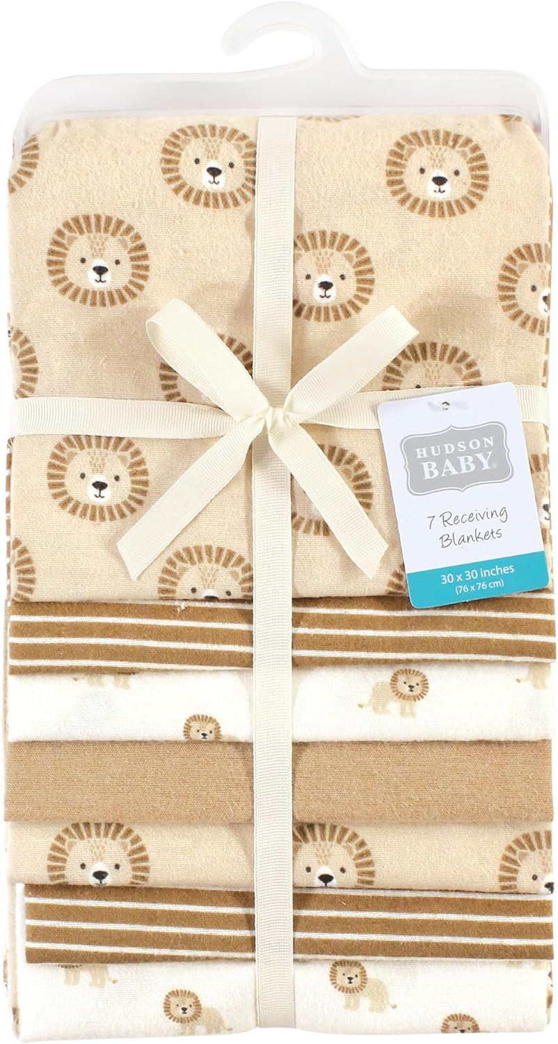 Hudson Baby Unisex Baby Cotton Flannel Receiving Blankets Bundle, Bee, One Size(Brave Lion One Size)