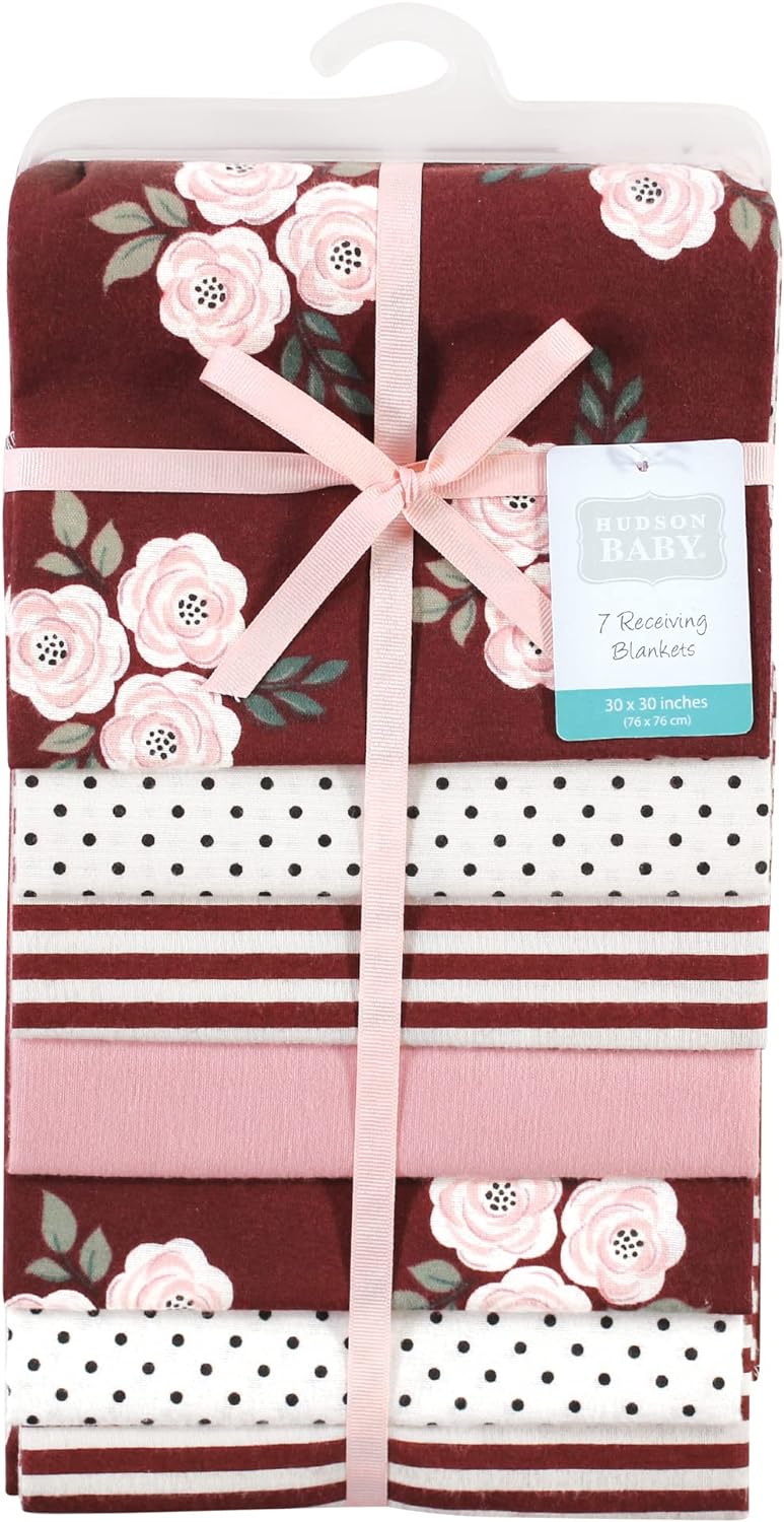 Hudson Baby Unisex Baby Cotton Flannel Receiving Blankets Bundle, Bee, One Size(Burgundy Floral One Size)