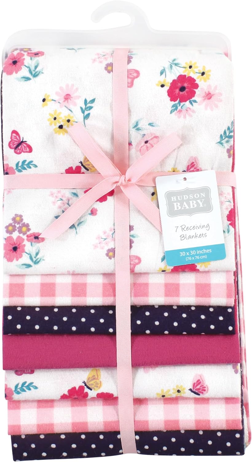 Hudson Baby Unisex Baby Cotton Flannel Receiving Blankets Bundle, Bee, One Size(Butterfly Floral One Size)