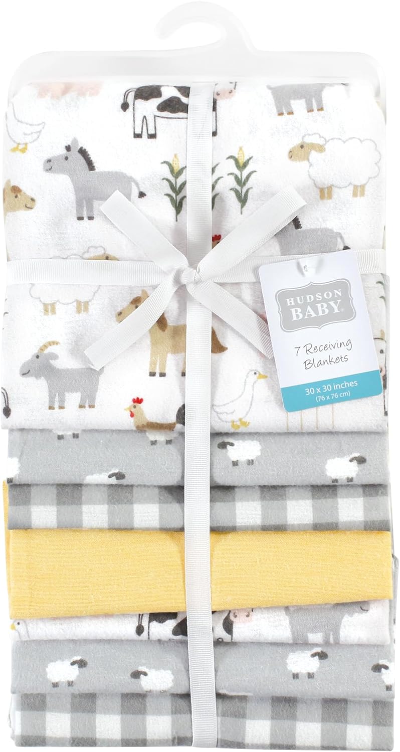 Hudson Baby Unisex Baby Cotton Flannel Receiving Blankets Bundle, Bee, One Size(Cute Farm One Size)