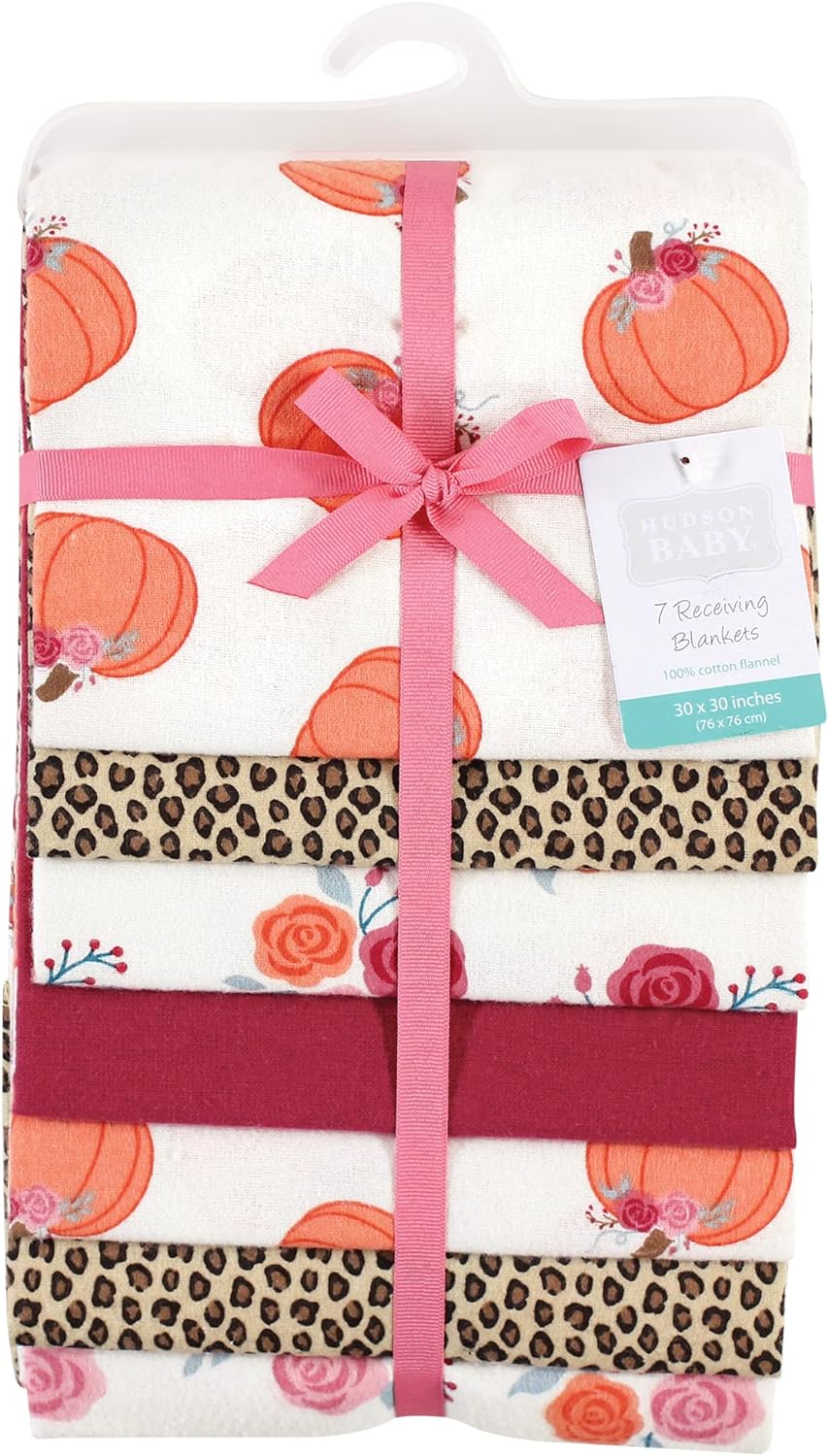 Hudson Baby Unisex Baby Cotton Flannel Receiving Blankets Bundle, Bee, One Size(Cutest Pumpkin One Size)