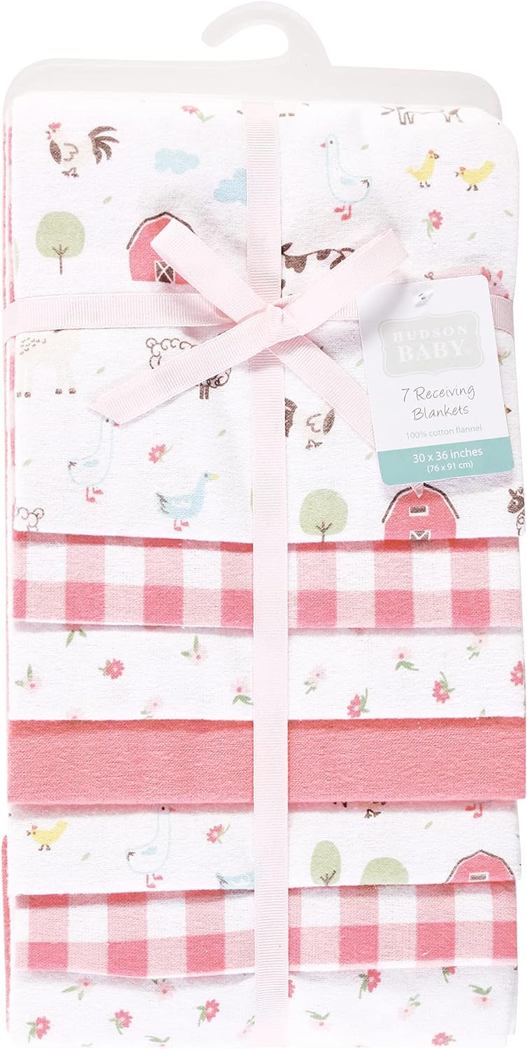 Hudson Baby Unisex Baby Cotton Flannel Receiving Blankets Bundle, Bee, One Size(Girl Farm Animals One Size)