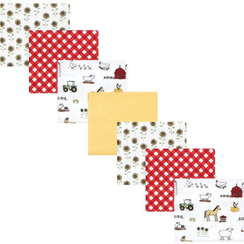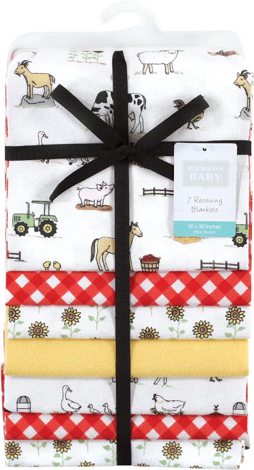 Hudson Baby Unisex Baby Cotton Flannel Receiving Blankets Bundle, Bee, One Size(Girl Farm One Size)