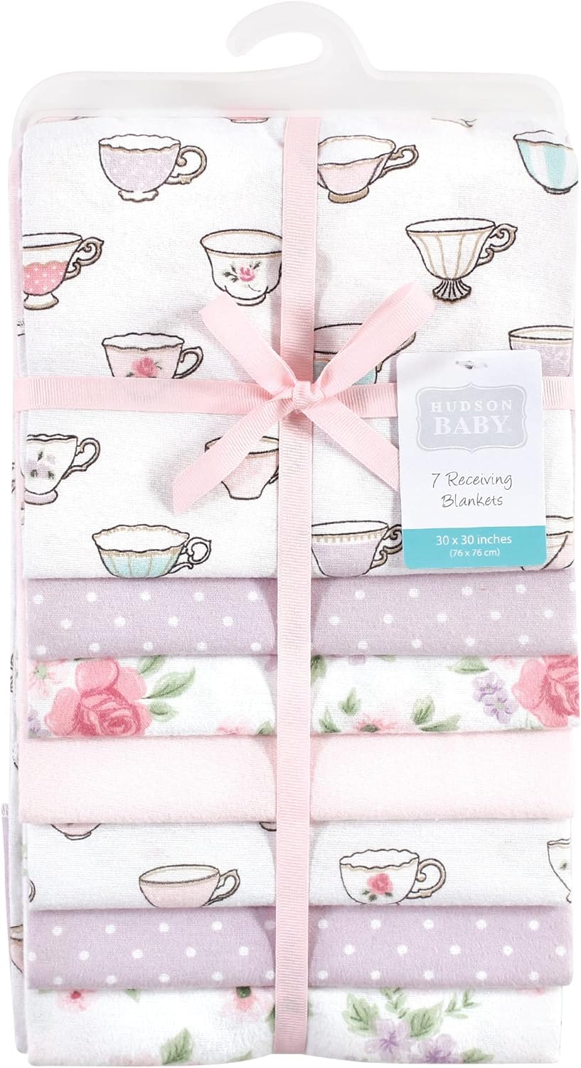 Hudson Baby Unisex Baby Cotton Flannel Receiving Blankets Bundle, Bee, One Size(Tea Party One Size)