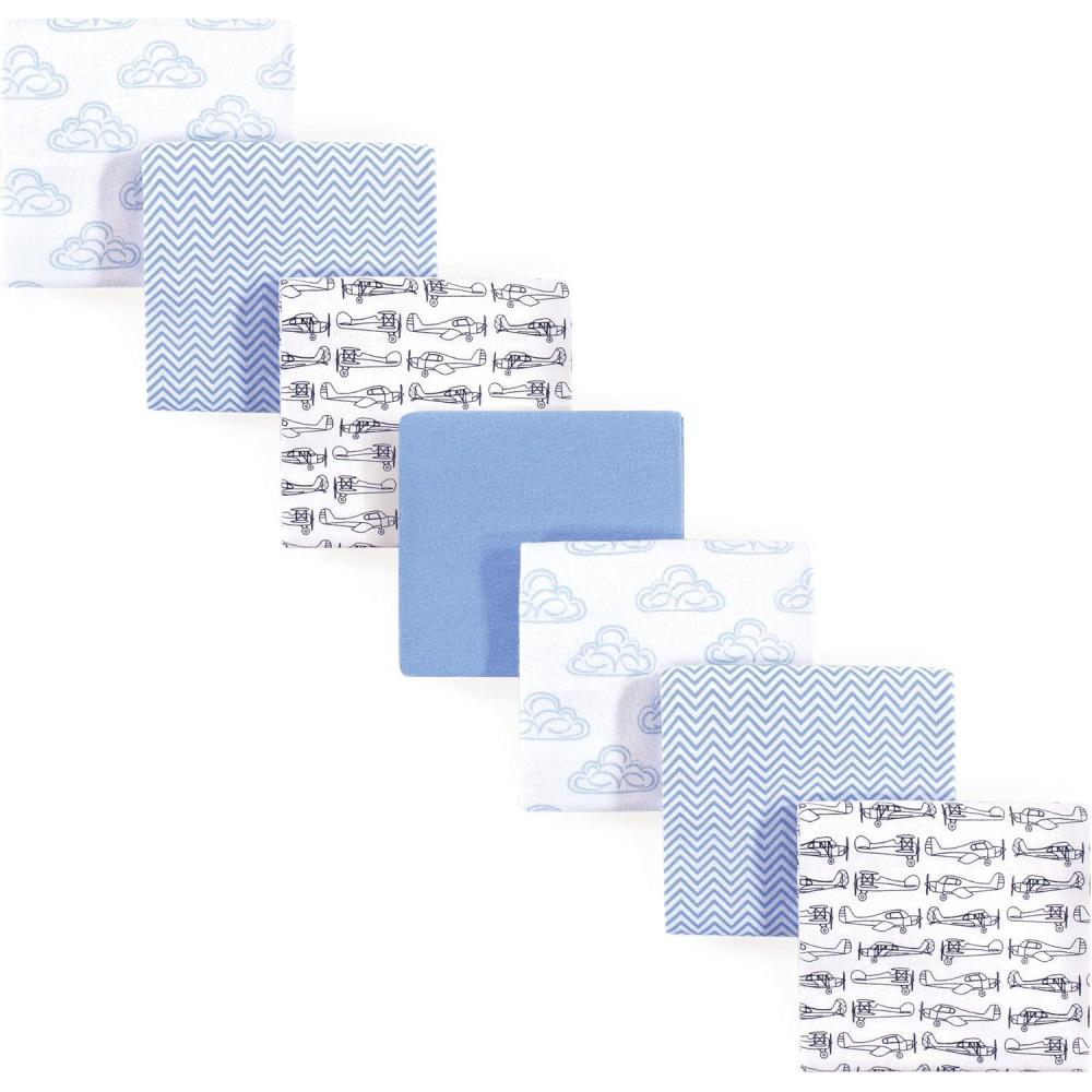 Hudson Baby Unisex Baby Cotton Flannel Receiving Blankets Bundle, Mustache Hat, One Size(Airplane)