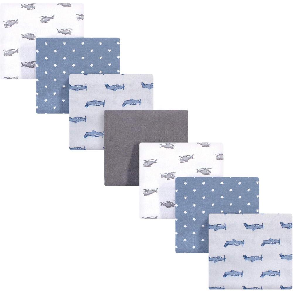 Hudson Baby Unisex Baby Cotton Flannel Receiving Blankets Bundle, Mustache Hat, One Size(Airplanes Helicopters)