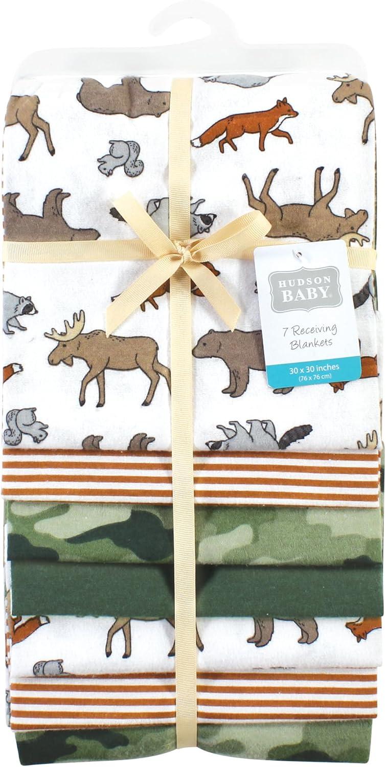 Hudson Baby Unisex Baby Cotton Flannel Receiving Blankets Bundle, Mustache Hat, One Size(Animal Adventure)