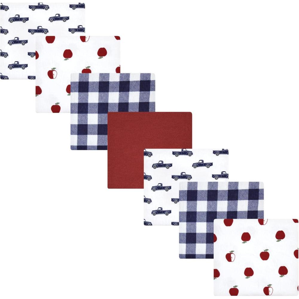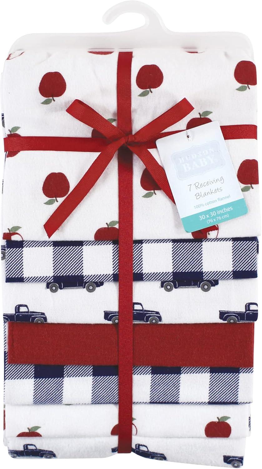 Hudson Baby Unisex Baby Cotton Flannel Receiving Blankets Bundle, Mustache Hat, One Size(Apple Orchard)