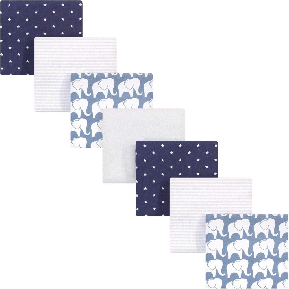 Hudson Baby Unisex Baby Cotton Flannel Receiving Blankets Bundle, Mustache Hat, One Size(Boy Elephant)