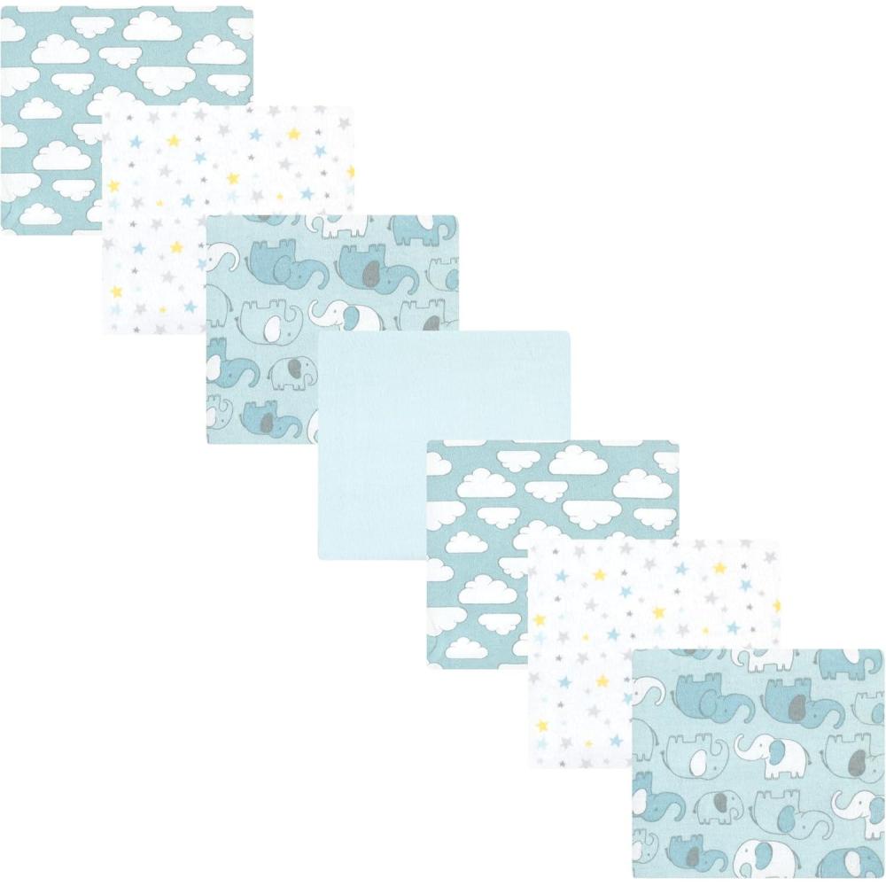 Hudson Baby Unisex Baby Cotton Flannel Receiving Blankets Bundle, Mustache Hat, One Size(Boy New Elephant)