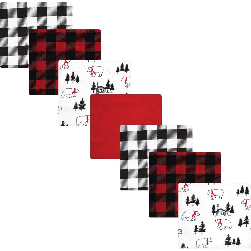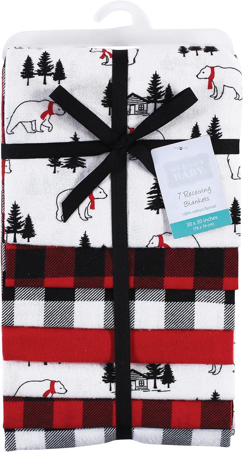 Hudson Baby Unisex Baby Cotton Flannel Receiving Blankets Bundle, Mustache Hat, One Size(Buffalo Plaid Bear)